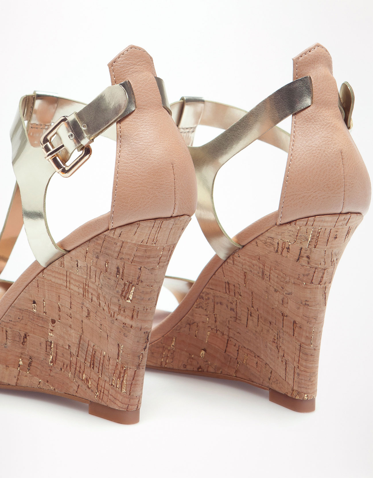 El tacón es de corcho pero tiene unos detalles dorados incrustados que le dan un toque diferente...