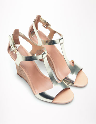 Les enseño las sandalias con cuña en color dorado que me compré en Bershka. Son muy versátiles pues tienen un tacón muy cómodo y un color que combina con todo...